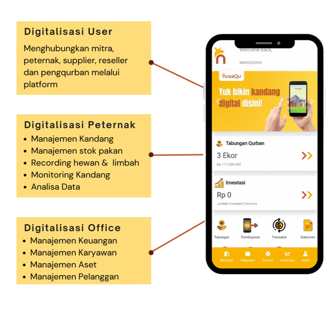 nusaQu menyediakan sistem dan teknolofi untuk mengefisiensikan peternakan mulai dari pendataan sampai penjualan